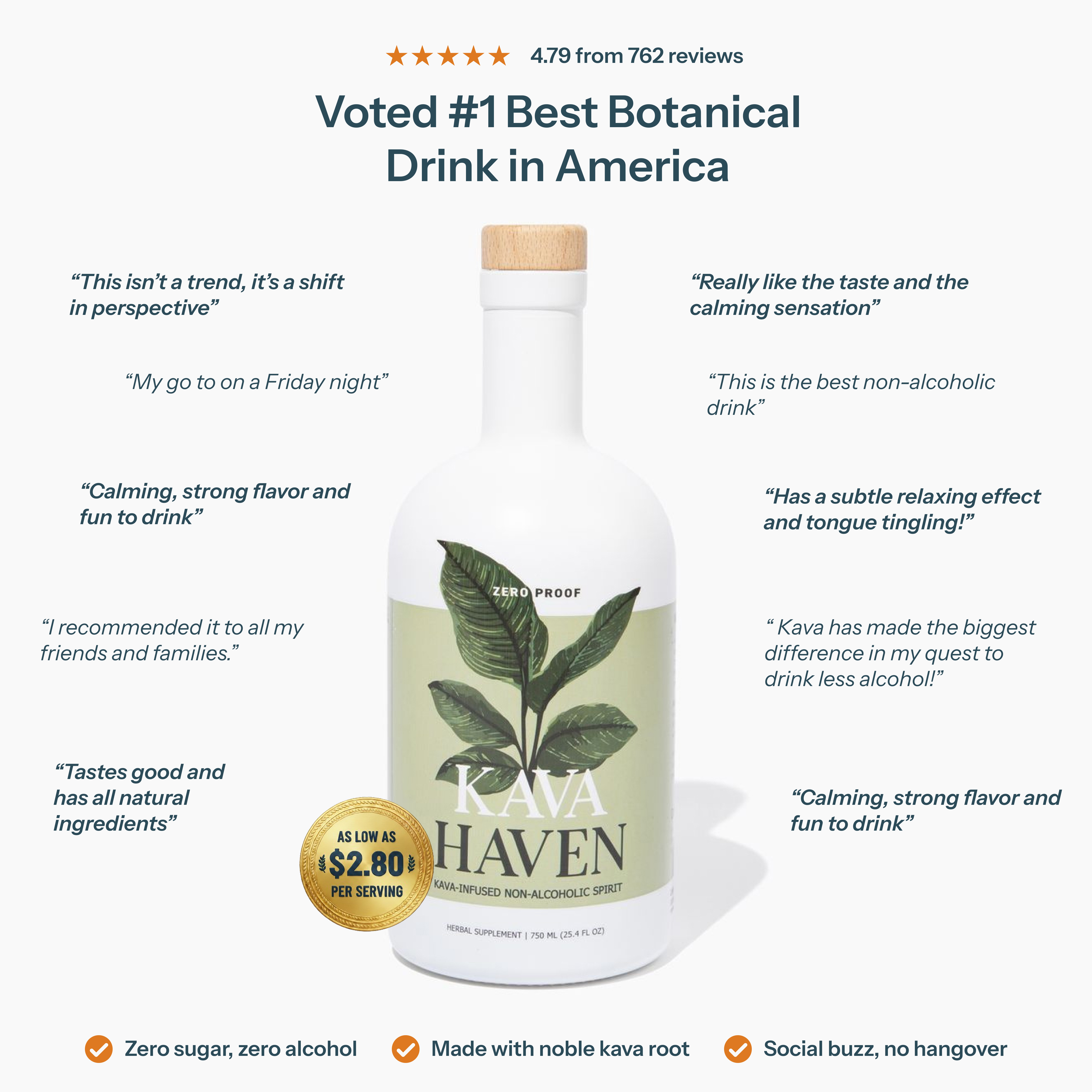 Kava Haven is simply spectacular. Its smooth, natural flavor, with the relaxing touch of kava, makes it the perfect drink to enjoy anytime without worrying about alcohol. It's refreshing, elegant, and beautifully presented, inviting you to try it.